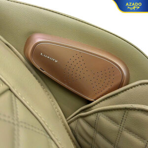 Ghế massage AZADO TA372 gây ấn tượng mạnh mẽ ngay từ cái nhìn đầu tiên với thiết kế hiện đại đầy tinh tế. Điểm nhấn nổi bật nhất chính là hai bên tay ghế được ốp nhựa màu đồng cổ cao cấp, tạo nên sự tương phản hài hòa với tông màu chủ đạo nâu của ghế. Hệ thống đèn LED tích hợp không chỉ mang tính thẩm mỹ cao mà còn tạo ra không gian thư giãn lý tưởng.
