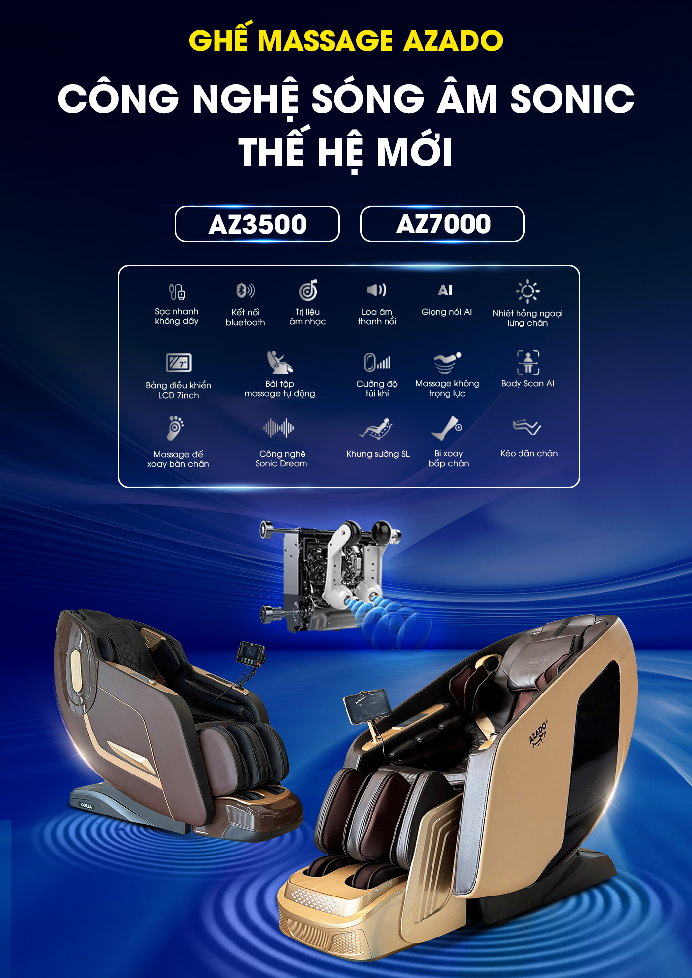 Ghế massage Công nghệ Sóng âm Sonic trị liệu chuyên sâu tại nhà