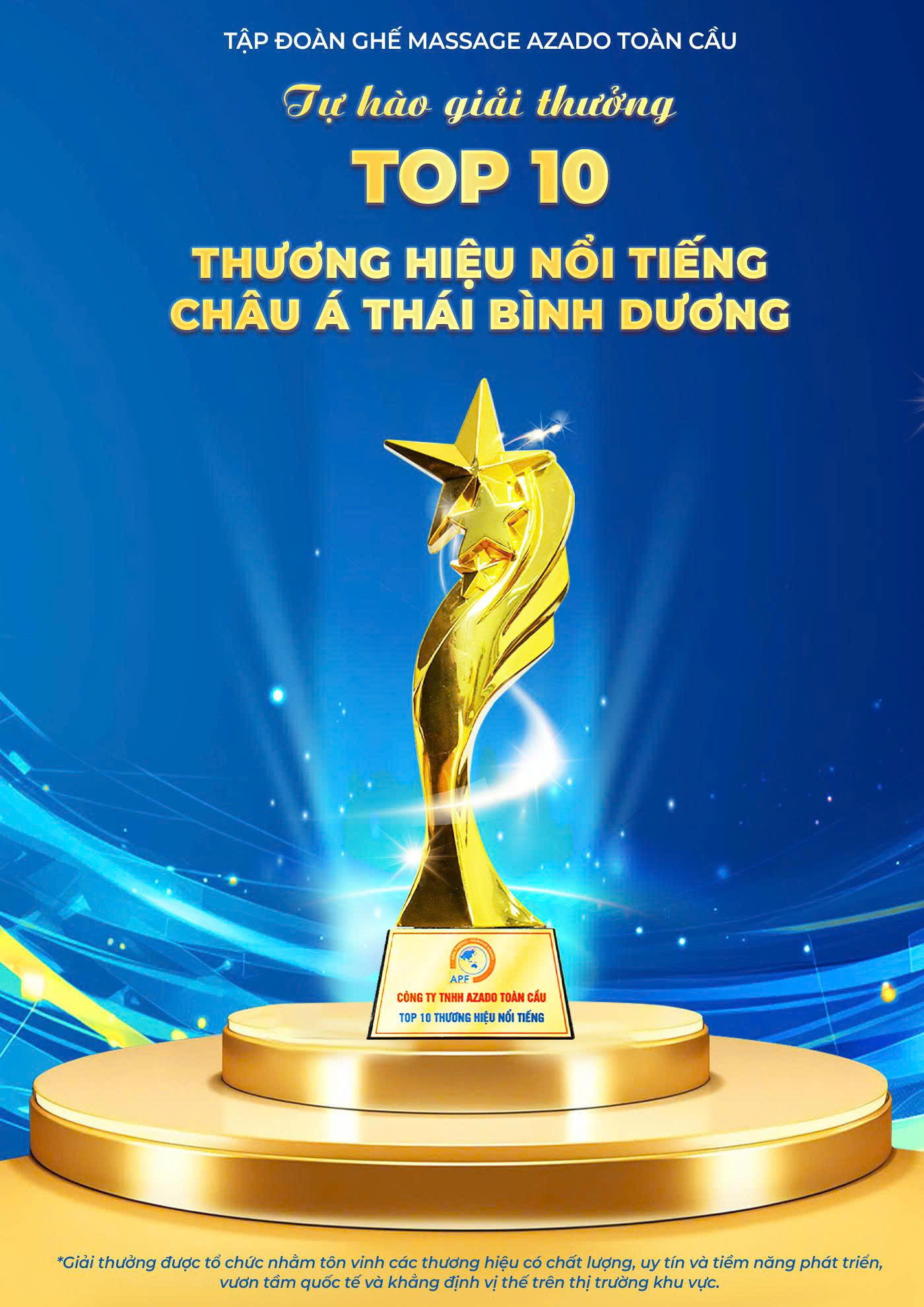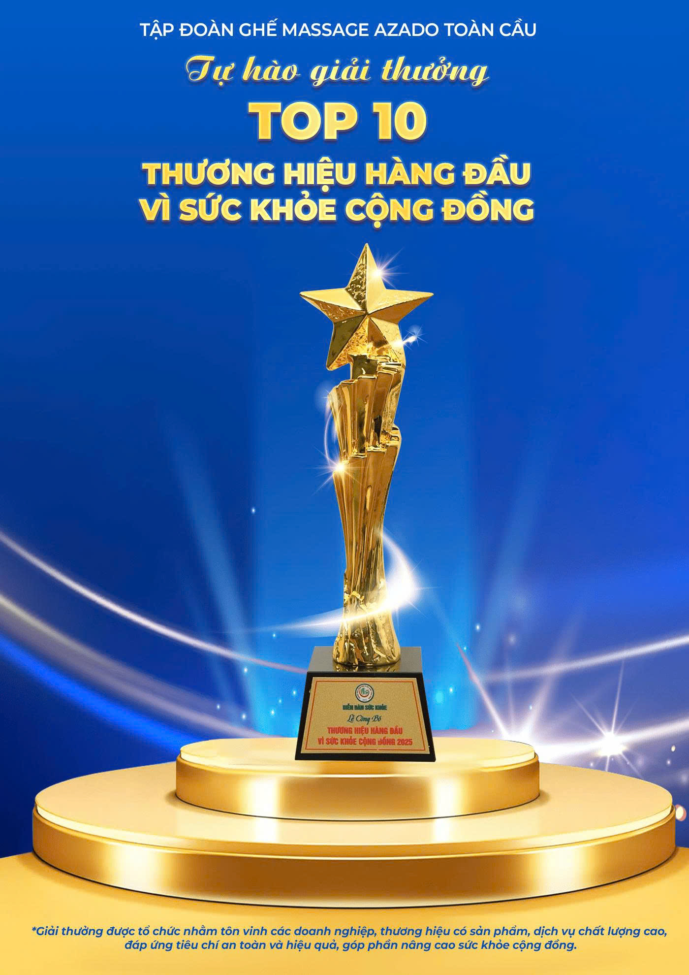 AZADO đạt Top 10 Thương hiệu Hàng đầu vì Sức khỏe Cộng đồng năm 2025