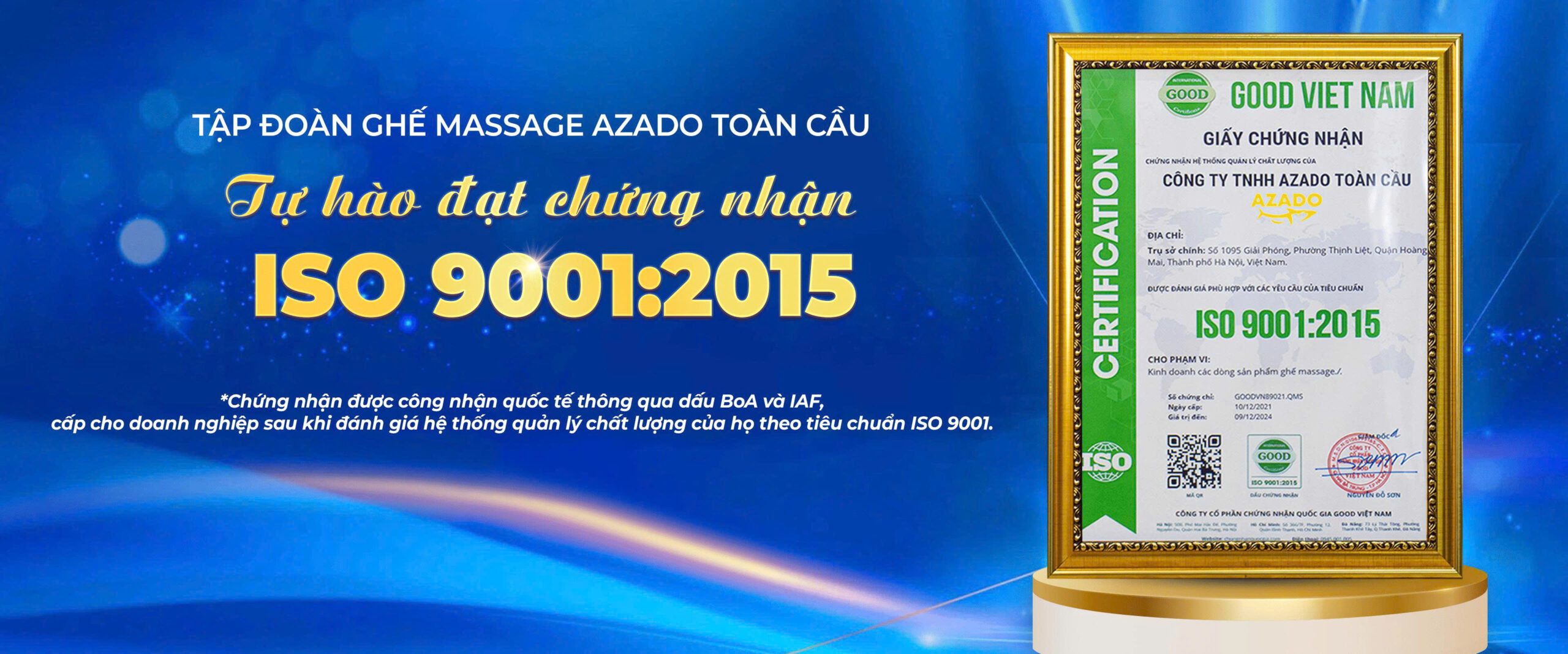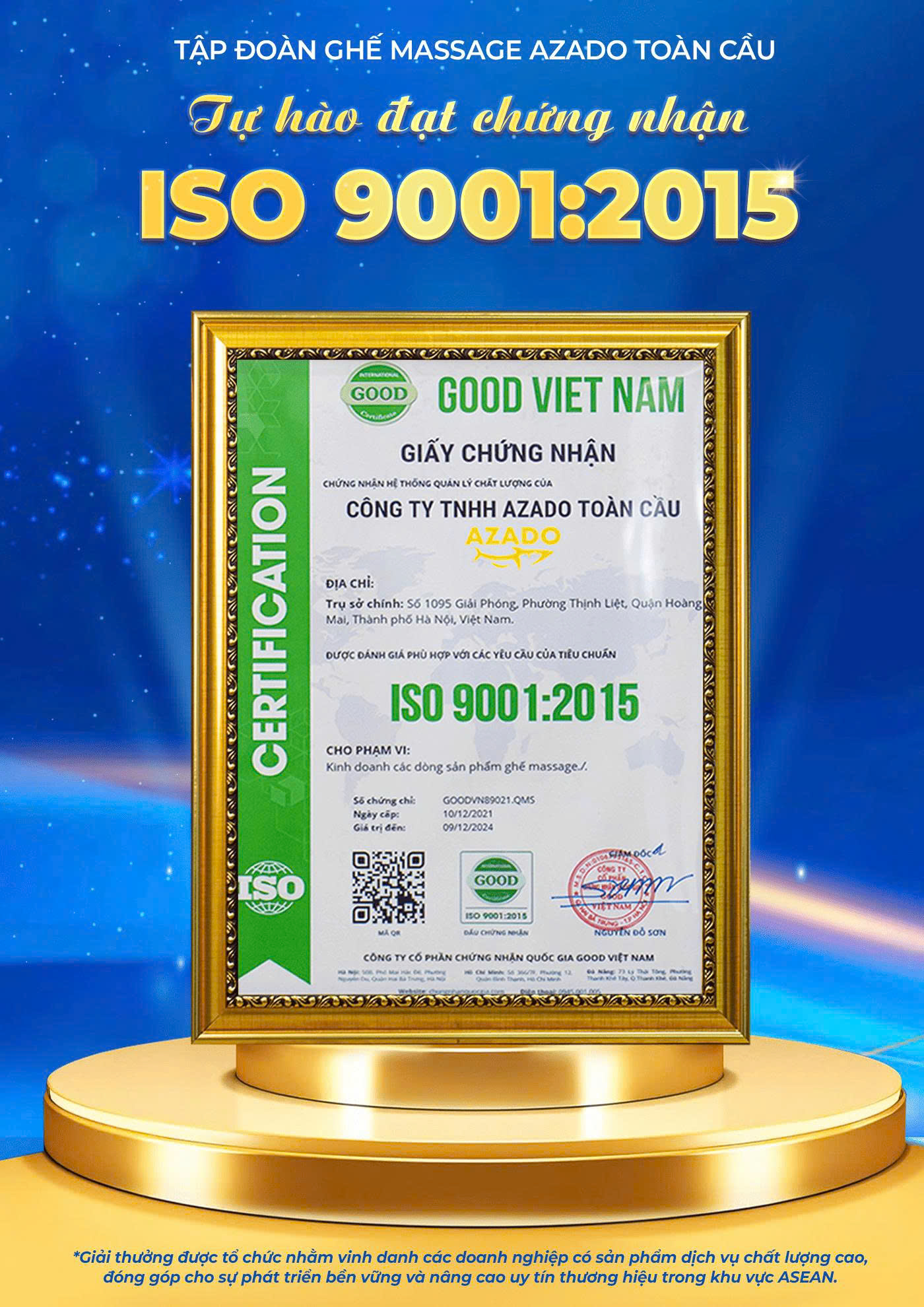 Chứng chỉ chứng nhận của AZADO